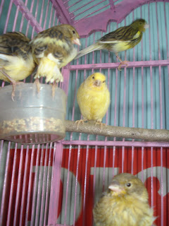 Anak kenari akan tingal di sarang selama 21 hari, tetapi sebelum usia 21 hari anak-anak sudah bertengger di bibir sarang.