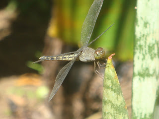 Allahu akbar! Sungguh, dari satu jenis binatang yang bernama capung saja ternyatan memiliki berbagai warna yang menawan. Capung warna badan abu-abu dengan ekor berwarna dasar coklat terang berhiaskan titik-titik dan garis hitam. Sayapnya berwarna abu-abu transparan. Sungguh merupakan penemuan yang tak terduga. Baru sekali ini “nuansa masel” menemukannya. Capung ini begitu saja hinggap di pucuk tanaman lidah mertua (sanseviera) ketika “nuansa masel” berada di dekatnya. Seolah-olah dia sengaja memamerkan kemolekan warna tubuhnya kepada “nuansa masel” yang ketika itu memang sedang membawa kamera saku pinjaman merek “Sony” tipe DSC-W150. Kenampakan yang demikian tak begitu saja disia-siakan. Kamera langsung saja dibidikkan ke arahnya. Hasilnya, satu dari dua jepretan capung abu-abu ditampilkan dalam posting ini. Mungkin hasil potretan ini kurang baik, namun “nuansa masel” masih berharap foto ini ada manfaatnya.