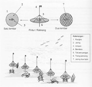 SaIah satu konstruksi berbentuk seperti bunga dengan diameter 120 cm dan tinggi 35 cm, dibuat dari bahan kawat plastik yang dilengkapi dengan untaian tali dan pada bagian atasnya ditutupi lembaran plastik hitam (Gambar 1).