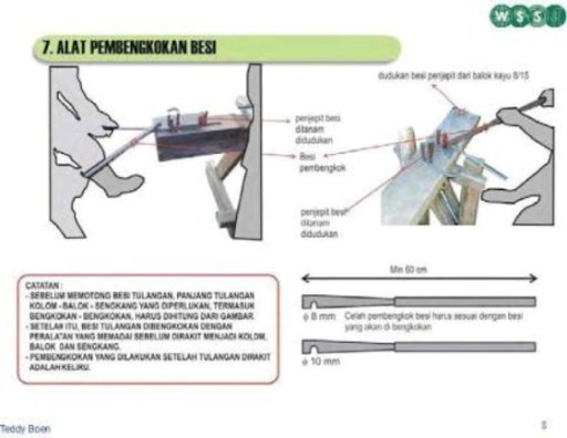 2. Semakin panjang alat pembengkok maka tenaga yang dikeluarkan ketika proses pembengkokan kecil, hanya saja konsekwensinya bahwa maneuver ketika pembengkokan jadi agak sulit dikarenakan panjangnya alat. Intinya semakin besar diameter besi tulangan beton, maka alat pembengkok yang digunakan harus semakin panjang.