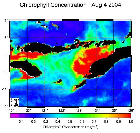 Gambar 5. Distribusi klorofil pada perairan Nusa Tenggara Timur dengan menggunakan data Modis_Terra (http://www.gsfc.nasa.gov)
